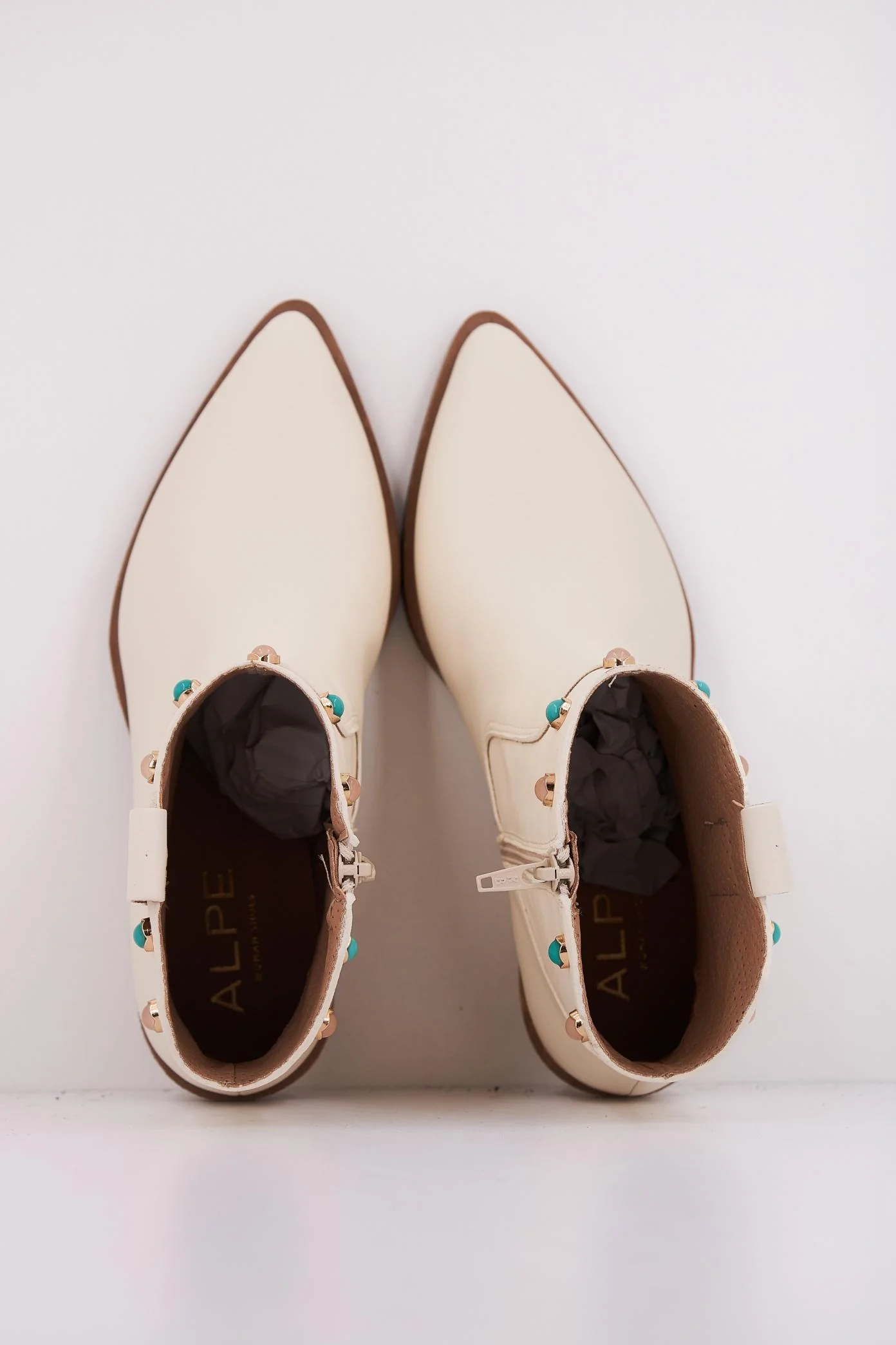 Descubre las elegantes botas de la marca ALPE, diseñadas con un estilo moderno que combina confort y sofisticación. Fabricadas en piel de alta calidad, presentan un acabado en color blanco, acentuado con detalles decorativos en tonos azul y oro. Su tacón bajo ofrece estabilidad, ideal para cualquier ocasión. Perfectas para añadir un toque único a tu outfit.