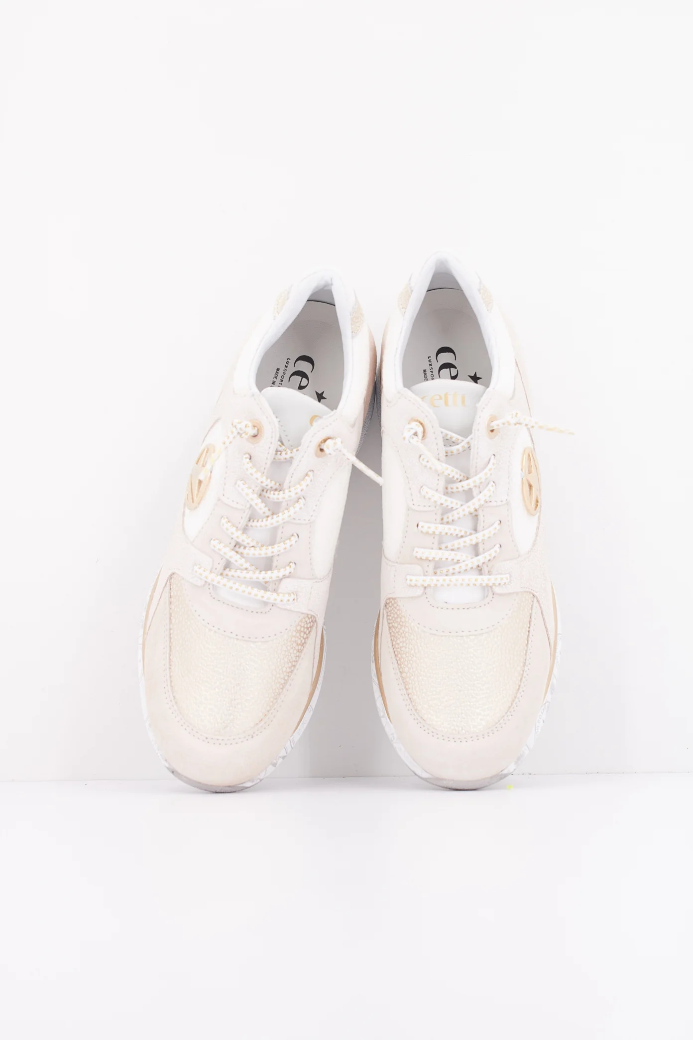 Las zapatillas CETTI modelo C-1376 SRA en color ivory son la combinación perfecta de estilo y comodidad. Confeccionadas en suave ante y detalles brillantes, ofrecen un diseño moderno que se adapta a cualquier look. Su suela ergonómica aporta soporte y ligereza, ideales para el uso diario. No solo son elegantes, sino también funcionales, perfectas para caminar con estilo.